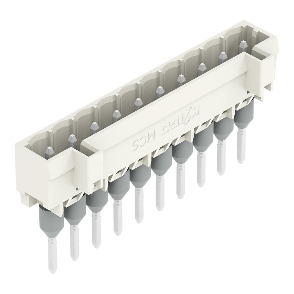 Male connector for rail-mount terminal blocks; 1.2 x 1.2 mm pins; straight; 100% protected against mismating; Pin spacing 5 mm; 10-pole; light gray