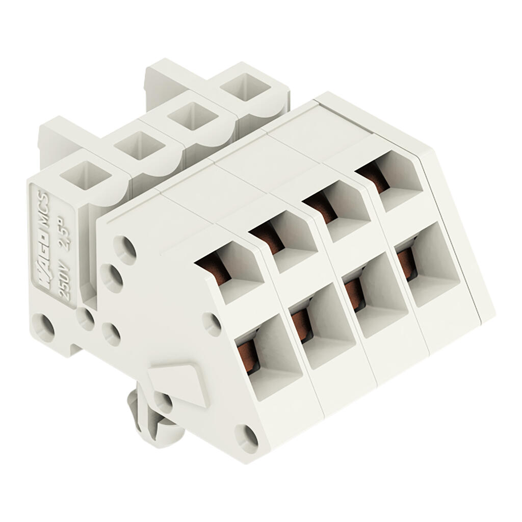 1-conductor female connector, angled; CAGE CLAMP®; 2.5 mm²; Pin spacing 5 mm; 4-pole; 100% protected against mismating; Snap-in mounting feet; 2,50 mm²; light gray