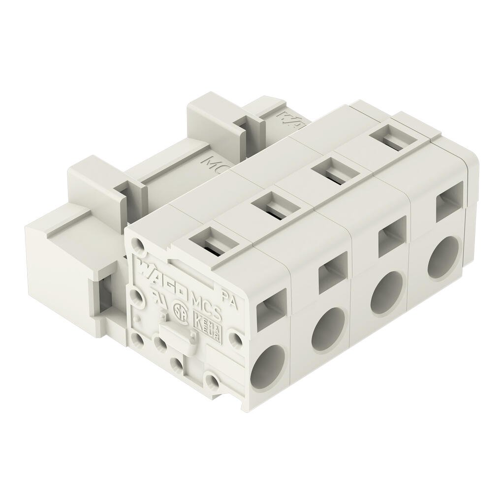 1-conductor male connector; CAGE CLAMP®; 2.5 mm²; Pin spacing 7.5 mm; 4-pole; 100% protected against mismating; 2,50 mm²; light gray