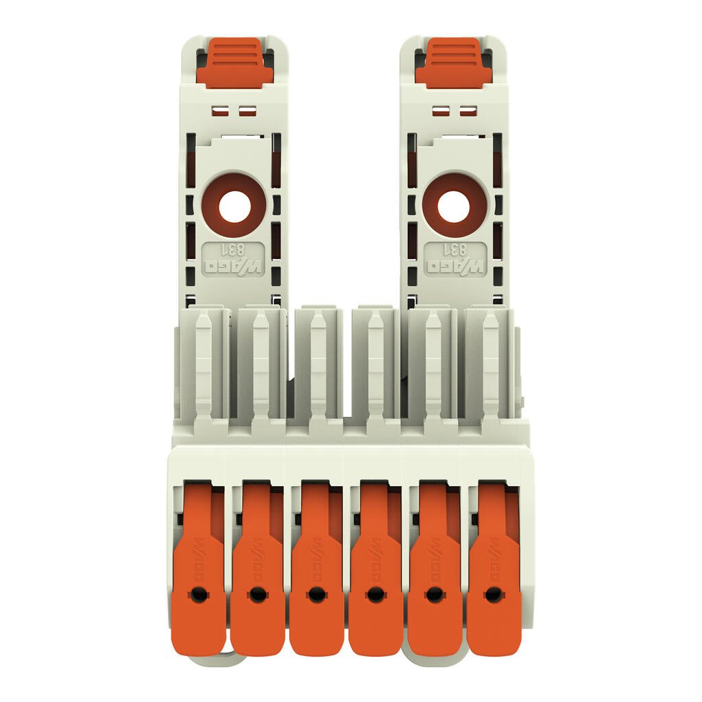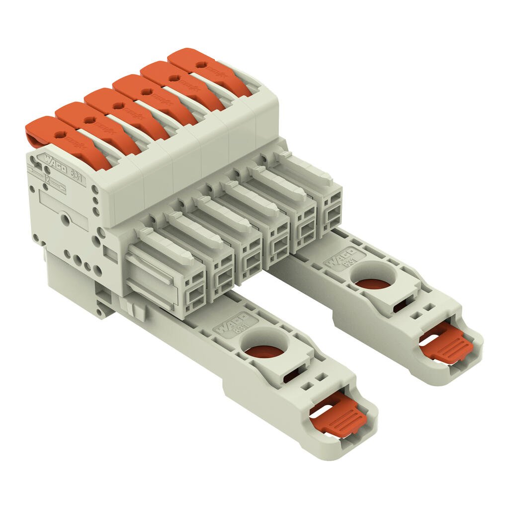 gniazdo 1-przewodowe; dźwignia; Push-in CAGE CLAMP®; 10 mm²; raster 7,62 mm; 6-bieg.; 100% ochrona przed błędnym połączeniem; TS 35/montaż na płycie; 10,00 mm²; jasnoszary