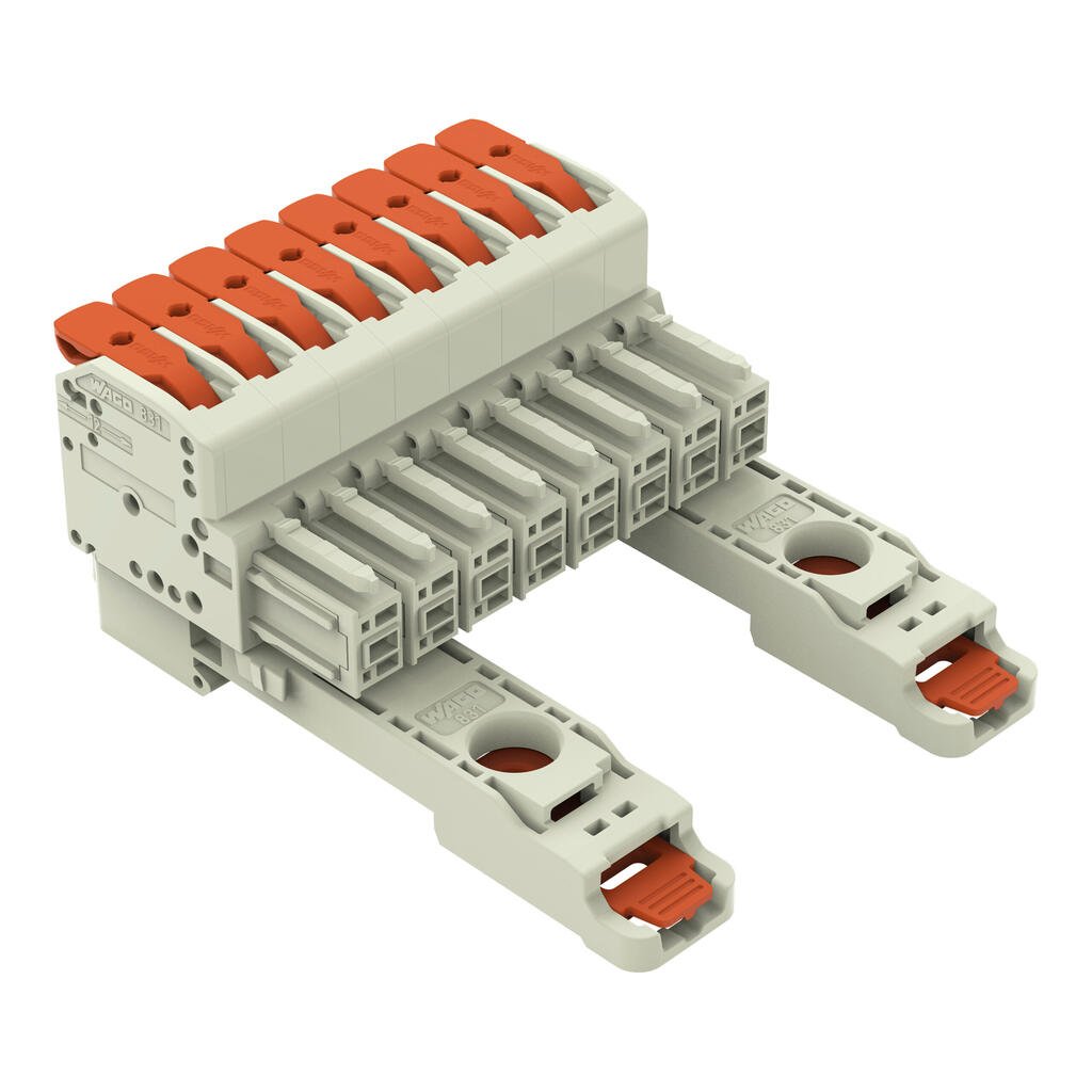 gniazdo 1-przewodowe; dźwignia; Push-in CAGE CLAMP®; 10 mm²; raster 7,62 mm; 8-bieg.; 100% ochrona przed błędnym połączeniem; TS 35/montaż na płycie; 10,00 mm²; jasnoszary