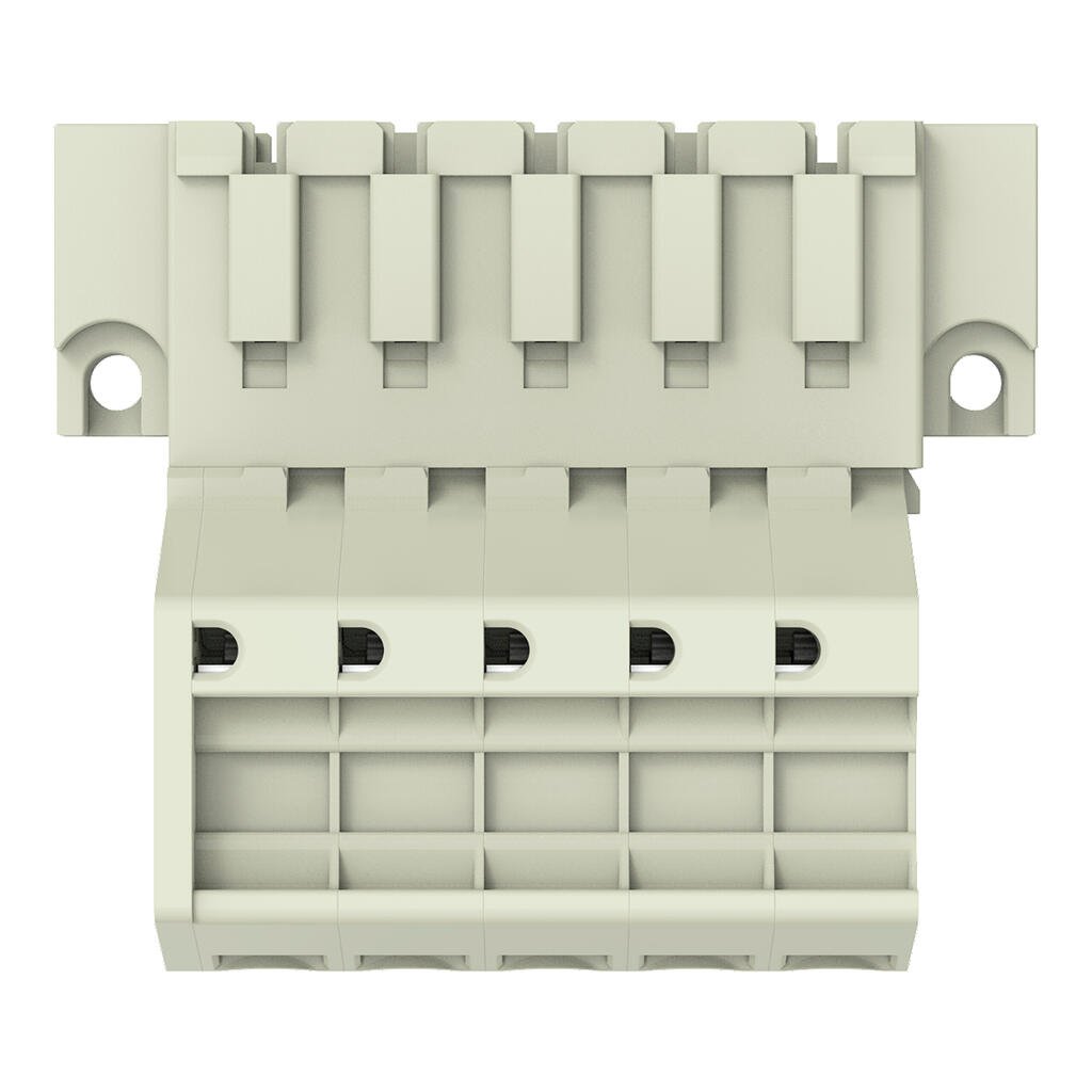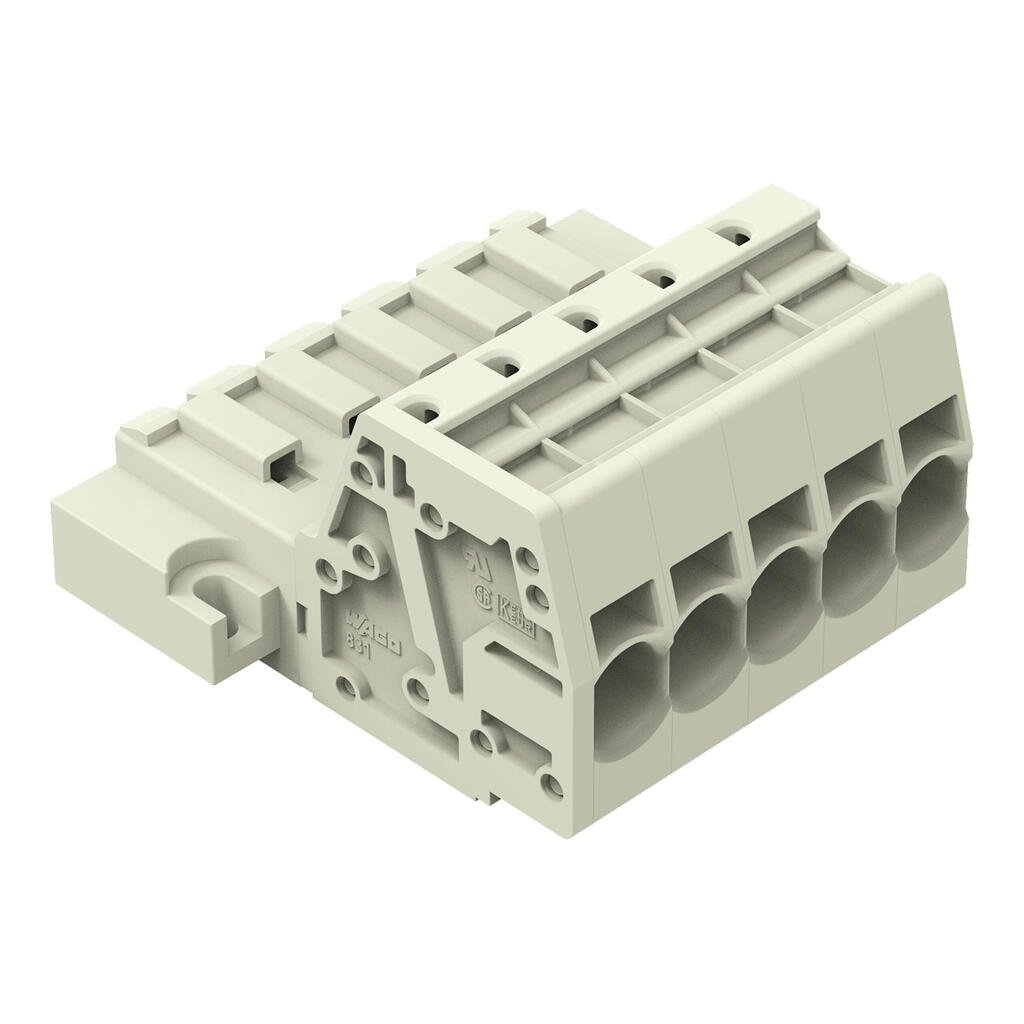 wtyk 1-przewodowy; Push-in CAGE CLAMP®; 10 mm²; raster 7,62 mm; 5-bieg.; 100% ochrona przed błędnym połączeniem; gwintowy uchwyt montażowy; 10,00 mm²; jasnoszary