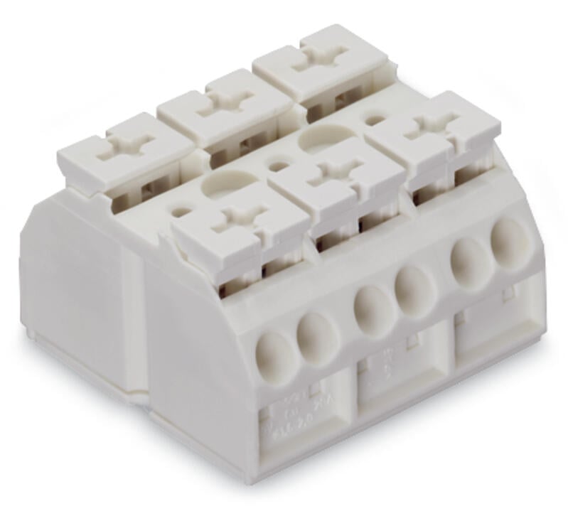 blok zasilający 4-przewodowy; bez styku PE; 3-bieg.; 1 stopka zatrzaskowa na biegun; 4 mm²; biały
