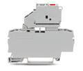 2-Leiter-Sicherungsklemme; mit schwenkbarem Sicherungshalter; mit Abschlussplatte; für G-Sicherungseinsatz 5 x 20 mm; mit Defektanzeige durch LED; 230 V; für Tragschiene 35 x 15 und 35 x 7,5; 2,5 mm²; Push-in CAGE CLAMP®; 2,50 mm²; grau