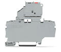 2-Leiter-Sicherungsklemme; mit schwenkbarem Sicherungshalter; mit zusätzlicher Brückung; für G-Sicherungseinsatz 5 x 20 mm; mit Defektanzeige durch LED; 12 - 30 V; für Tragschiene 35 x 15 und 35 x 7,5; 2,5 mm²; Push-in CAGE CLAMP®; 2,50 mm²; grau
