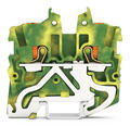 2-johdin-pienoismaadoitusliitin; painikkeen kera; 1 mm²; reuna- ja keskimerkintä; DIN-15 kiskolle; Paikalleen työnnettävä CAGE CLAMP®; 1,00 mm²; vihreä-keltainen