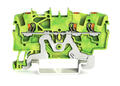 Regletă cu 3 cond. de protecţie; cu buton cu reţinere; 1,5 mm²; cu port test; marcare laterală şi centru; pentru şină DIN 35 x 15 şi 35 x 7,5; CAGE CLAMP® înclichetare; 1,50 mm²; verde-galben